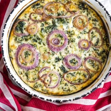 - Red onion rings - this can be substituted with green onions or omitted for a lower carb quiche.