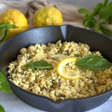 This keto vegan cauliflower risotto has the summer flavours of lemon and basil for a refreshing meal. Enjoy it as a gluten free side or main dish.